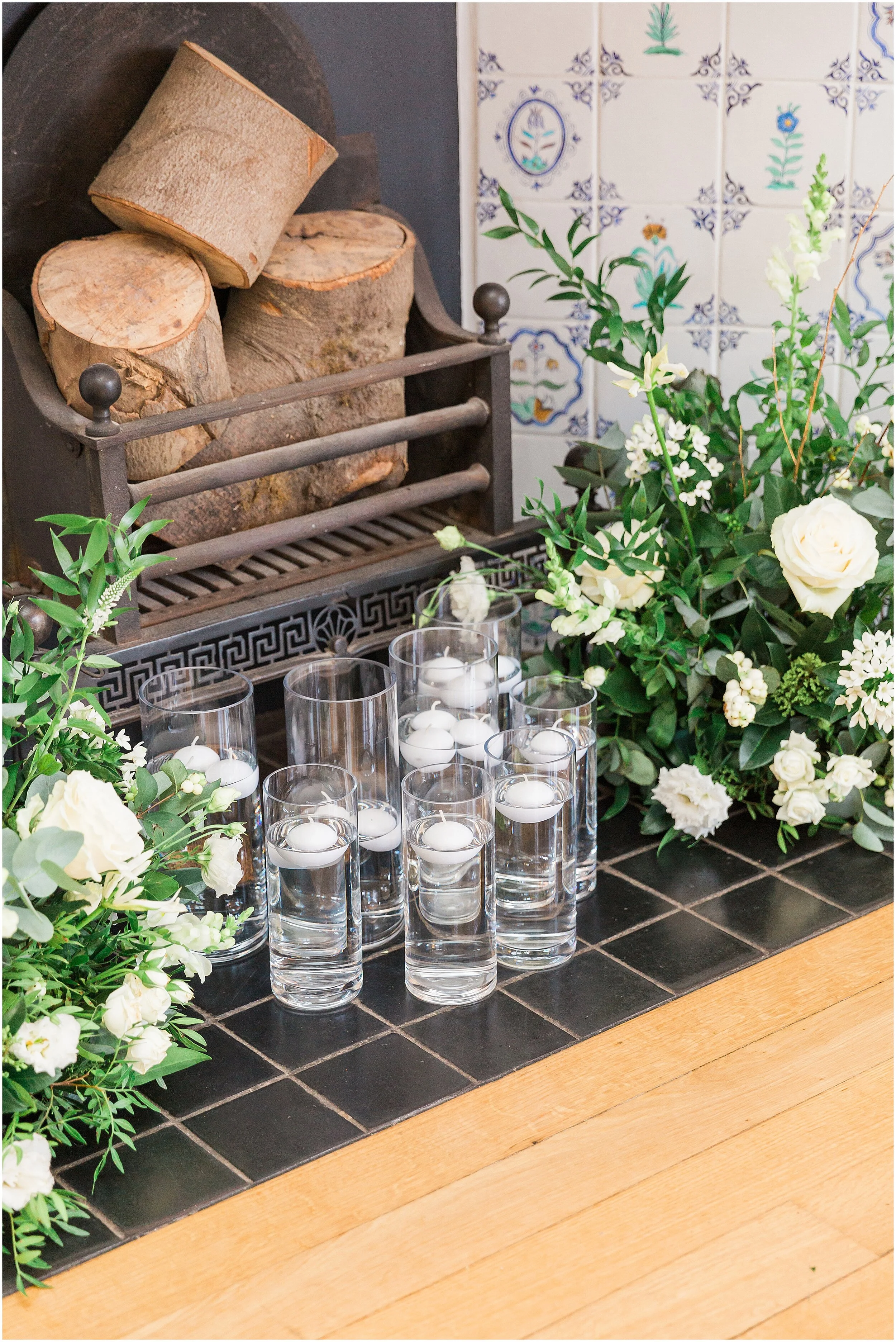 We used the stunning fireplace in the ballroom at Coombe Lodge for some beautiful bridal portraits as there is just something so romantic about being inside by a fireplace when it’s cold outside! And to add to the cosy winter feel of the wedding, we created a hot chocolate bar that would warm up your guests after your post ceremony photos outside during the winter months.